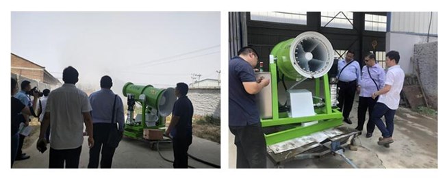利用超高壓泵將水加壓至40公斤以上,經過高壓管路至高壓噴嘴霧化,霧滴的直徑僅為10-50um這些微小的霧化顆粒能長時間漂浮在空氣中漂浮在空間,由空氣分解,它們具有較強的表面活性和吸附能力對懸浮在空氣中的粉塵—— 別是直徑在5微米以下的可吸入顆粒進行有效的吸附,使粉塵受重力作用而沉降,從而達到抑塵作用。
