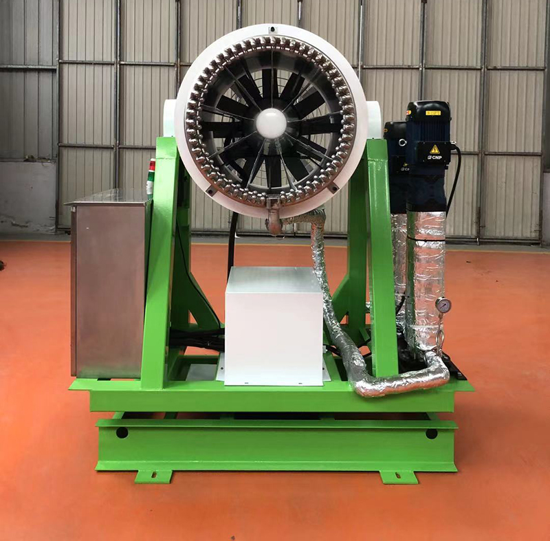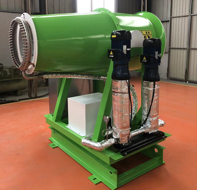 此款設(shè)備的噴霧距離是60米,配備的南方泵業(yè)的雙泵,將設(shè)備連續(xù)工作時間延長至24小時壓力能達(dá)到4Mpa,噴射出來的霧粒30微米。風(fēng)機(jī)采用的是18.5KW的節(jié)能降噪風(fēng)機(jī),整個設(shè)備啟動起來噪音低于85db。這次的噴嘴要求也很嚴(yán)格,達(dá)到了吹出來的霧落地不濕的效果。噴嘴嚴(yán)格那么過濾也得嚴(yán)格,水質(zhì)不好會堵塞噴嘴,整體設(shè)備單 配了一套過濾系統(tǒng)。還有自動泄水功能,停機(jī)即自動泄水。為了冬天 的使用,整體管路和水泵都做了嚴(yán)格的保溫設(shè)備。旋轉(zhuǎn)方面使用西門子plc系統(tǒng)單 控制設(shè)備的旋轉(zhuǎn),讓旋轉(zhuǎn)系統(tǒng)實(shí)現(xiàn)隨時左右擺動,告別限位開關(guān)時代。配電系統(tǒng)采用的全進(jìn)口施耐德,保證了整體設(shè)備的運(yùn)行穩(wěn)定性。