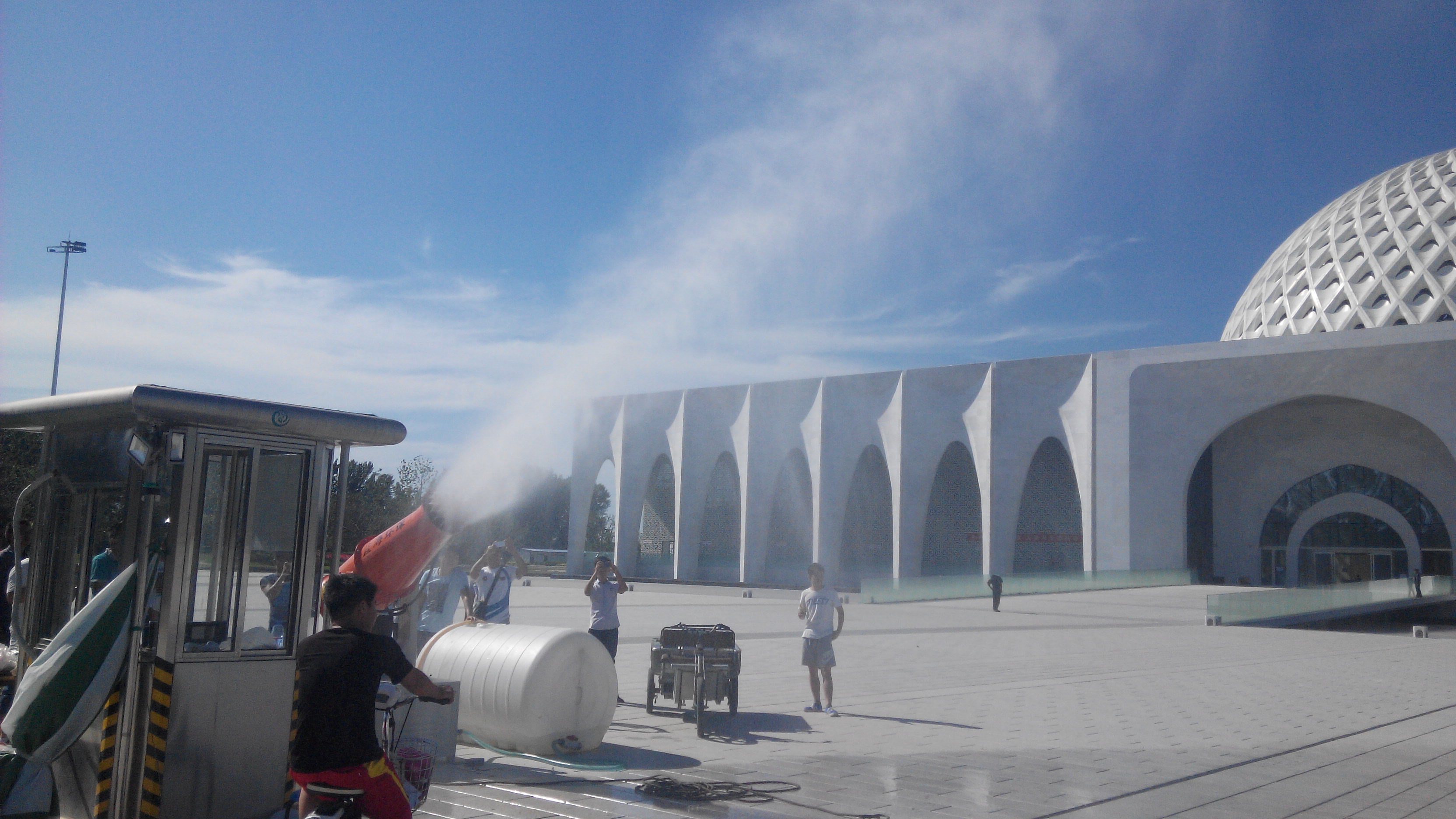 廊坊環保局定制除塵噴霧機用于民族文化宮廣場降溫。