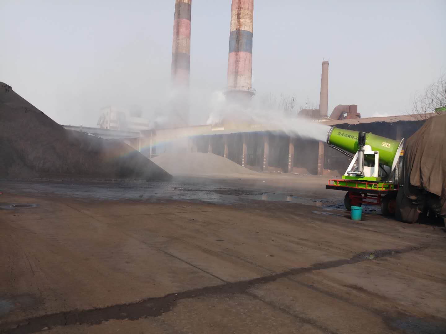 霧炮機應(yīng)該是用高壓安裝將水霧化工作,使水霧和粉塵顆粒相同大小的水分子,然后應(yīng)用大功率風(fēng)機送風(fēng),噴霧器具有強風(fēng),范圍廣,防塵空氣與水霧顆粒接觸凝結(jié)沉淀,然后到達(dá)防止灰塵,凈化空氣。
