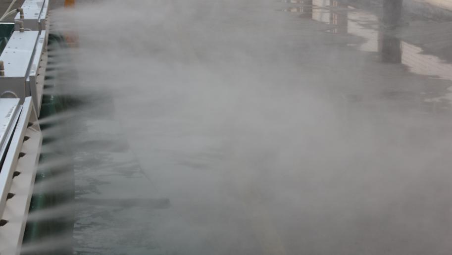 干霧抑塵系統也被稱作“微米級噴霧降塵、除塵系統”,是因為干霧抑塵系統可以持續的產生1~10微米高度霧化的水霧顆粒,而水霧顆粒的大小跟灰塵顆粒的大小相近時,可以使水霧顆粒與粉塵顆粒充分碰撞凝聚再經由地心引力的吸引沉落下來,達到抑塵、降塵、除塵的效果。