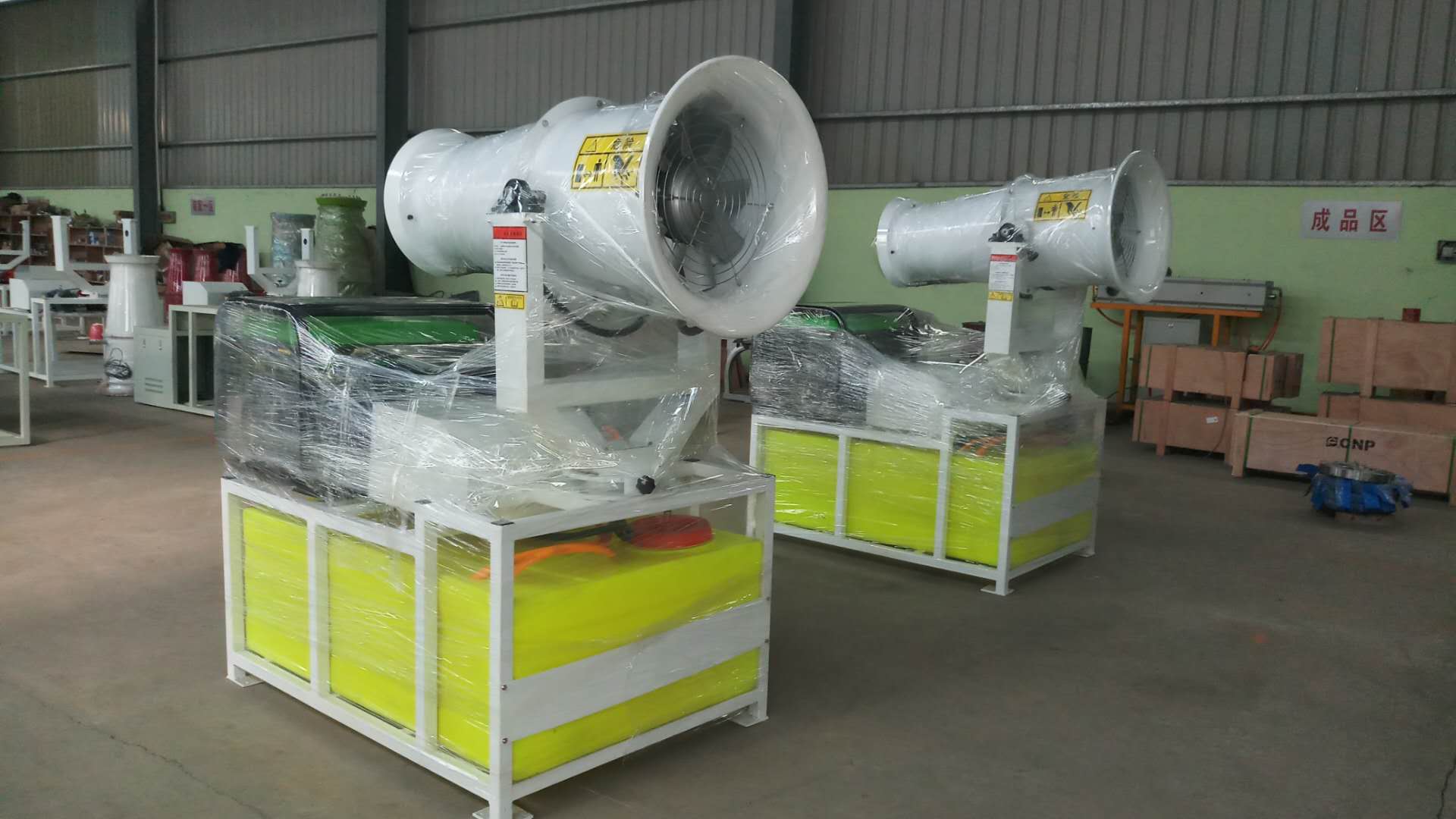 風送式除塵霧炮機主要作用是除塵降塵,眾所周知揚塵是有細小的微粒經過風力的作用漂浮在空中形成的,一般的灑水車噴出的水成霧化狀很好的與揚塵結合使其比重增加,射程也沒有霧炮機射程遠,使用范圍也直接接受到限制,而霧炮機噴射出的水經過霧化噴頭噴射出的水成霧化狀很好的與揚塵結合使其比重增加在空中下降,再者霧炮機經過高壓水泵和風力的作用射程也可以達到30到100米射程,范圍廣 的節約了用戶的使用成本。
