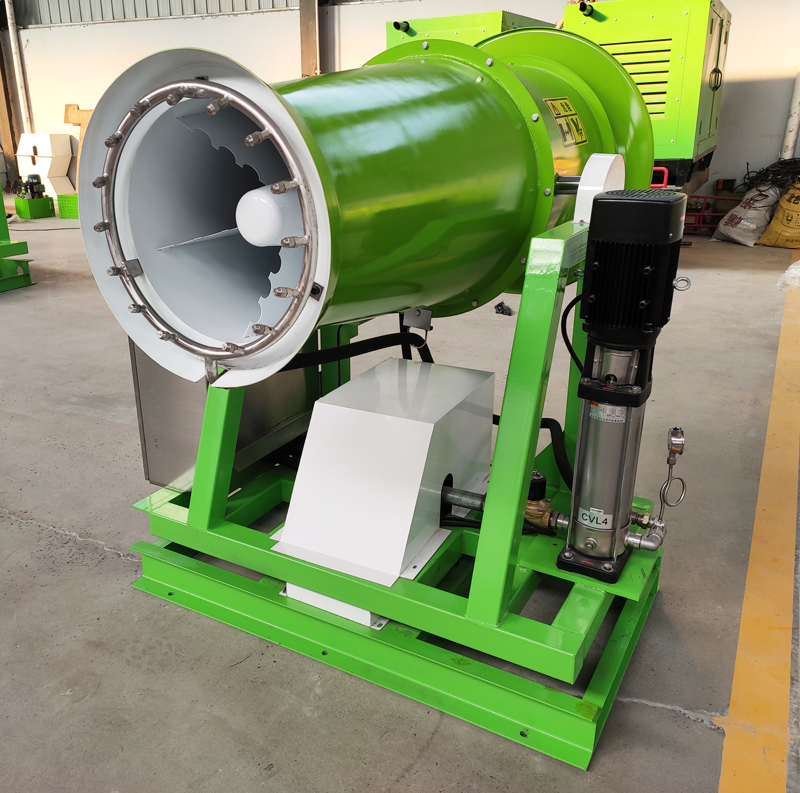 霧炮機是用高壓將液態水變成 細小的顆粒, 像漂浮在空氣中的塵埃顆粒一樣,然后可以將它聚集在空氣中,凝固成一體,這樣 可以與塵埃相互作用在空中以這種方式達到除塵的效果,也 是說,如果空氣中有 多浮動液體,除塵效果會 明顯,但每個人都在使用它,根據這樣的工作,在高壓噴出水霧后,它將粘付在塵埃顆粒上,這將導致其重力不斷增加,因此它會下沉并落到陸地上。