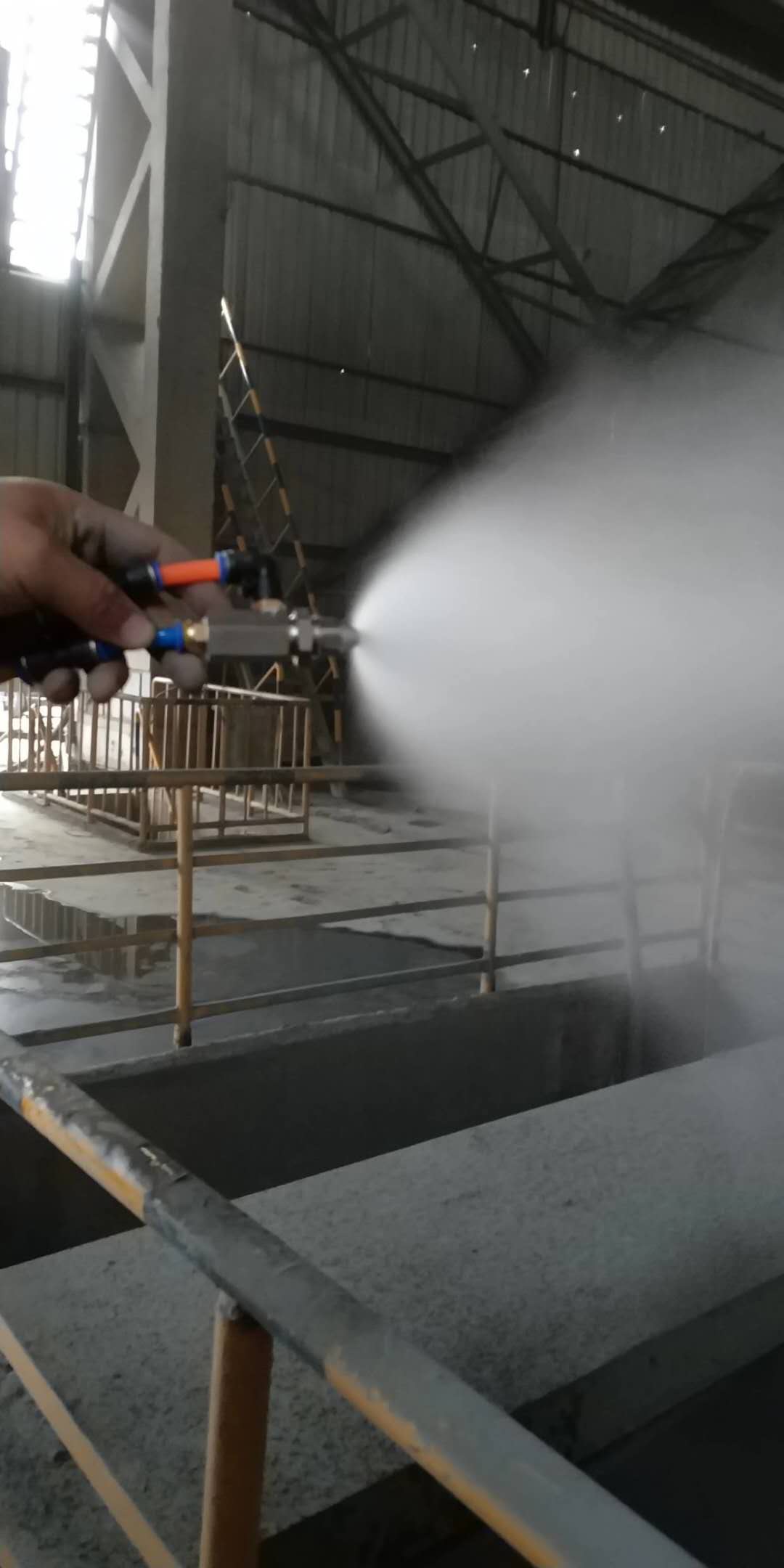 干霧抑沉裝置是利用干霧噴霧器產生的10µm以下的微細水霧顆粒,使粉塵顆粒相互粘結,聚結增大,并在自身重力作用下沉降。粉塵可以通過水粘結而聚結增大,但哪些 細小的粉塵只有當水滴很小(如干霧)或加入化學劑(如表面活性劑)減小水表面張力時才會聚結成團,如果水霧顆粒直降大于粉塵顆粒,那么粉塵緊隨著水霧顆粒周圍氣流而運動,水霧顆粒和粉塵顆粒接觸很少或者根本沒有機會接觸,則達不到抑塵作用,如果水霧顆粒與粉塵顆粒大小接近,粉塵顆粒隨著氣流運動時 會與水霧顆粒碰撞,接觸而粘結在一起,水霧顆粒越小,聚結幾率則越大,隨著聚結的粉塵團變大家重,從而很容易降落。