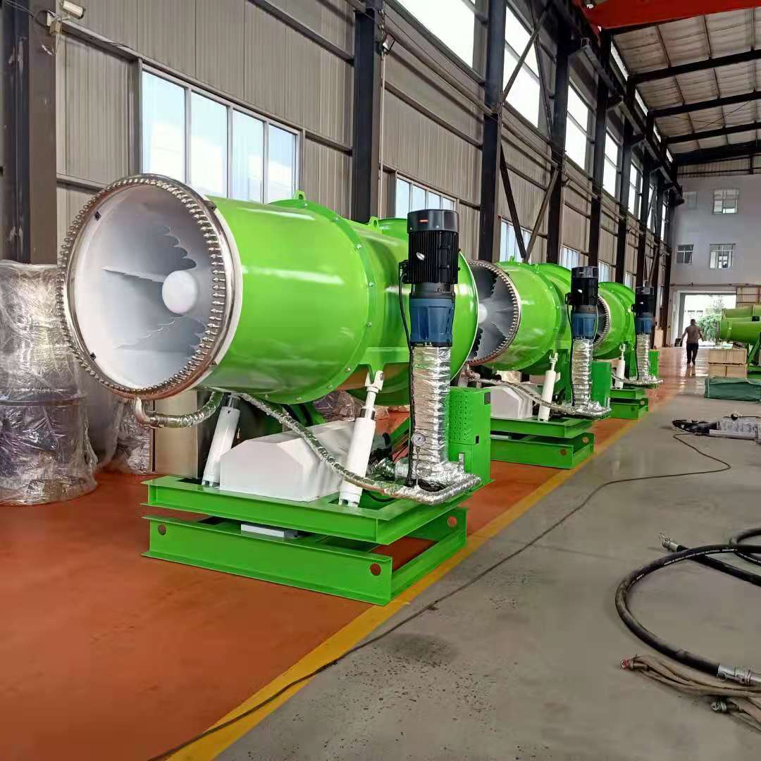 除塵霧炮機的 點是功率強,射程遠,覆蓋面積大,能夠實現定量定時噴霧,工作效率高,噴灑速度快。在對容易引起粉塵的區域進行噴霧時,與空氣中的粉塵顆粒容易相互吸附,形成潮濕霧狀體,可以快速將粉塵降落在地面。風送式發電機組除塵噴霧機,動力比較靈活,能夠使用380V市電,也可以用柴油發電機組提供動力,即使在郊外作業也無需發愁。霧炮機使用安裝靈活,有固定式和移動式。固定式霧炮機可以安裝在混泥土建筑的平臺上和高塔架上。需要移動時可以安裝在電動三輪車,牽引車,載貨車上,可以邊行駛邊操作牽引式霧炮機的耗水量要比其他抑塵設備節約一半以上,并且水霧覆蓋的面積 大,效果 。