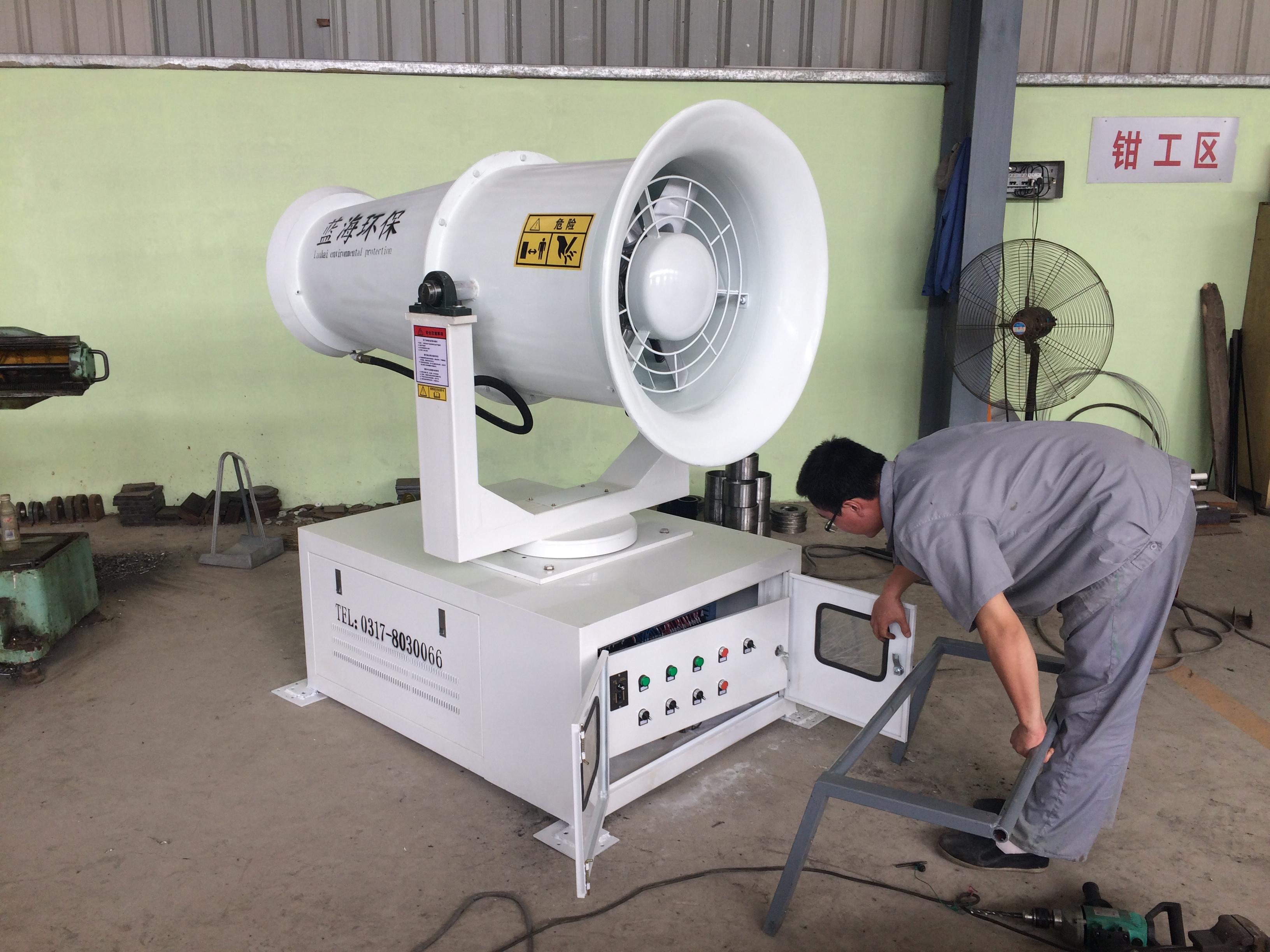 天津昊陽益潔能源有限公司定制的LHW-35新型除塵噴霧機進入發貨前的最后裝配工作,該除塵噴霧機采用新型節能電動機,在獲得充分動能的同時,又降低了能耗,符合國家節能環保的號召,同時這次藍海推出的除塵噴霧機一改以前的涂裝,簡約的白色降低了工作時產生的熱量,又能保護風機表面光澤度