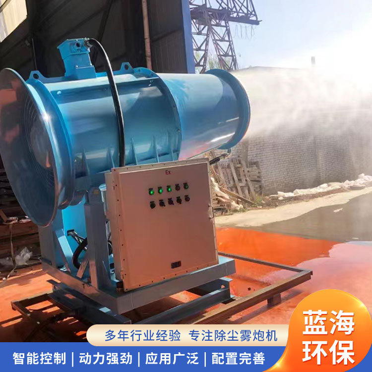除塵霧炮又稱抑塵車,顧名思義即車與霧炮的整合體,除塵霧炮霧炮車分為車體,除塵霧炮兩大部分,車體涵蓋牽引動力來源機車,噴霧所需液體容器水箱,霧炮動力來源發電機,與傳統霧炮不同的是,霧炮車泵體的動力來源則是由機車動力提供,此設計可以降低成本節約空間,同時可以保證霧炮車外觀的整潔。